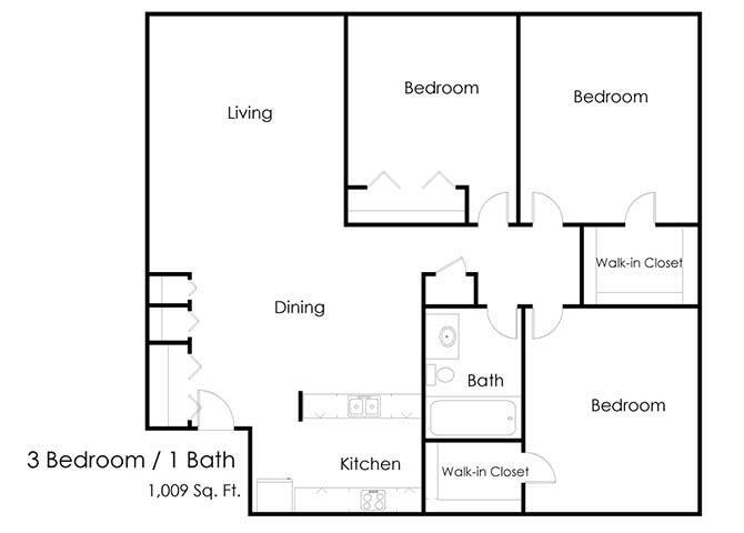 Modelo de apartamento: Three Bedroom3 Dormitorios, 1 Baño, 1009 sq ftNo Disponible![]()