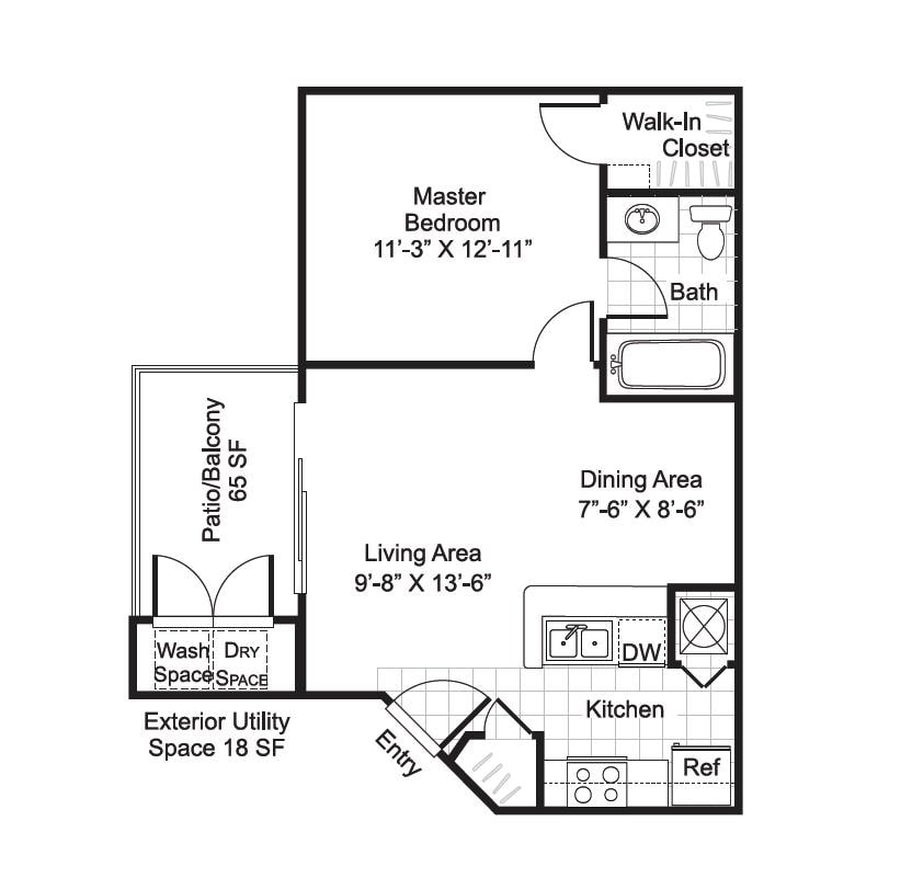 1 Dormitorio, 1 Baño, 612 pies²Galería del Modelo