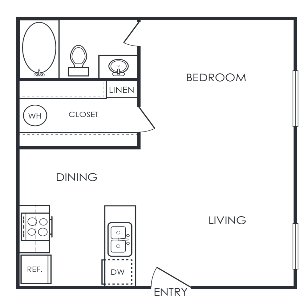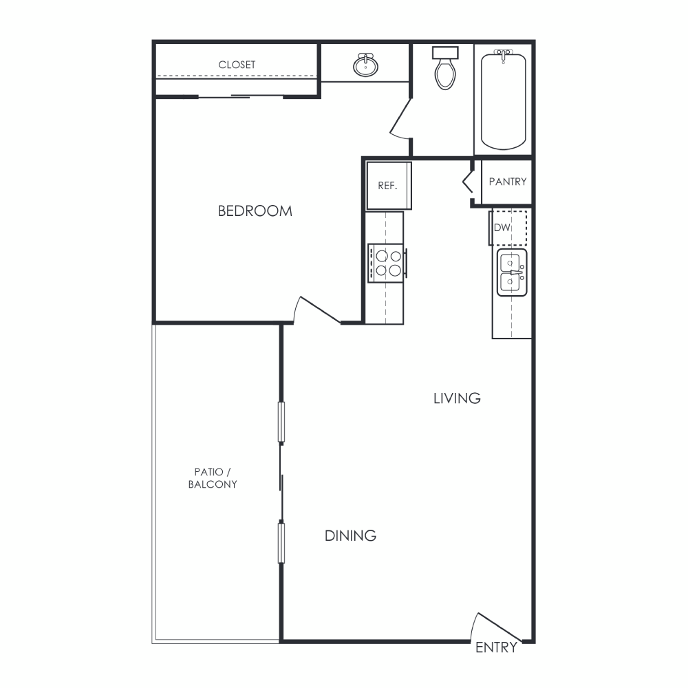 Modelo de apartamento: A1Llame para Precios1 Dormitorio, 1 Baño, 603 sq ftNo Disponible![]()
