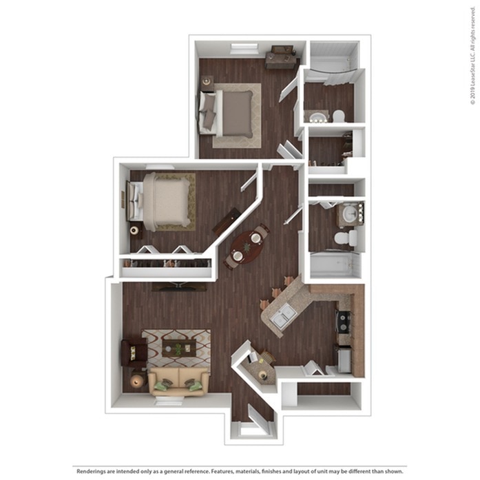 Modelo de apartamento: B2 Dormitorios, 2 Baños, 934 sq ftDisponible Ahora![]()