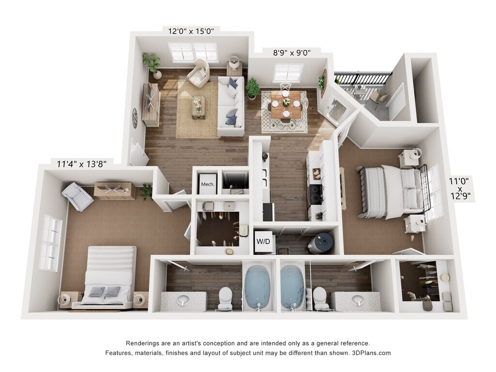 2 Dormitorios, 2 Baños, 965-1038 pies²Disponible AhoraGalería del Modelo