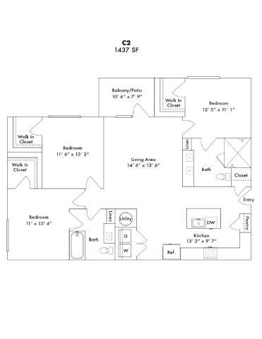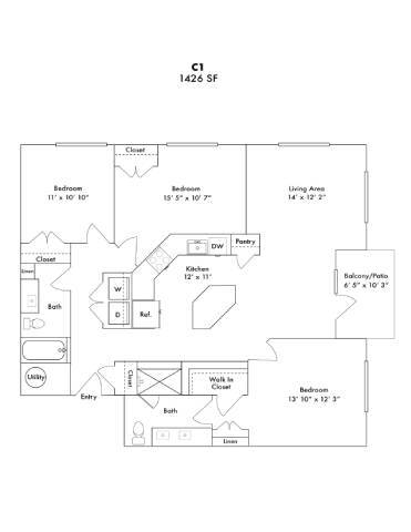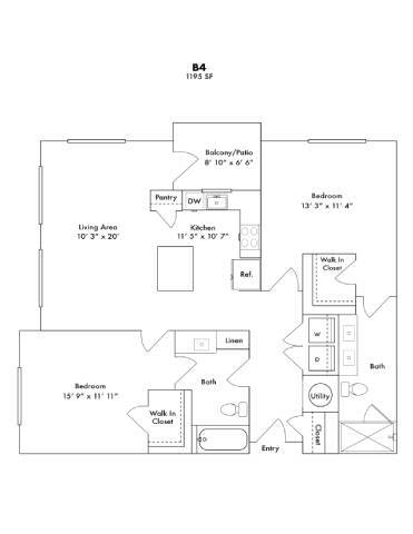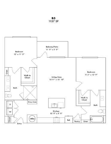 1 Dormitorio, 1 Baño, 1217 pies²El más grandeEsta opción tiene las unidades más grandes para este modeloGalería del Modelo