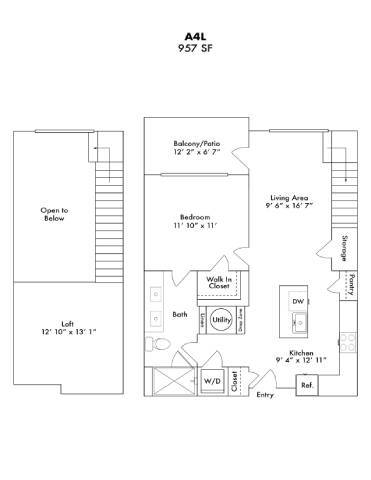A4L - Plano 1 Los planos de la planta son una interpretación artística. Todas las dimensiones son aproximadas. Los tamaños o el detalle del producto real y sus especificaciones pueden variar. No todas las características están disponibles en todos los hogares para rentar. Los precios y la disponibilidad están sujetos a cambios. El alquiler que se muestra es mensual. Se pueden aplicar ciertos cargos, por ejemplo, entrega de paquetes, recolección de basura, agua, servicios, etc. Depositos varian. Consulta a un representante para conocer detalles.
