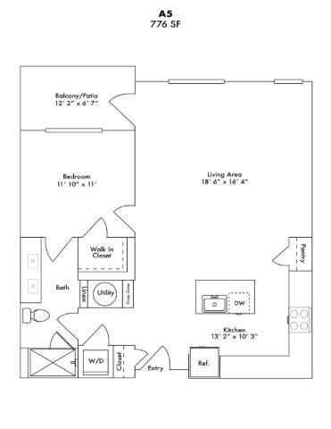 A5 - Plano 1 Los planos de la planta son una interpretación artística. Todas las dimensiones son aproximadas. Los tamaños o el detalle del producto real y sus especificaciones pueden variar. No todas las características están disponibles en todos los hogares para rentar. Los precios y la disponibilidad están sujetos a cambios. El alquiler que se muestra es mensual. Se pueden aplicar ciertos cargos, por ejemplo, entrega de paquetes, recolección de basura, agua, servicios, etc. Depositos varian. Consulta a un representante para conocer detalles.