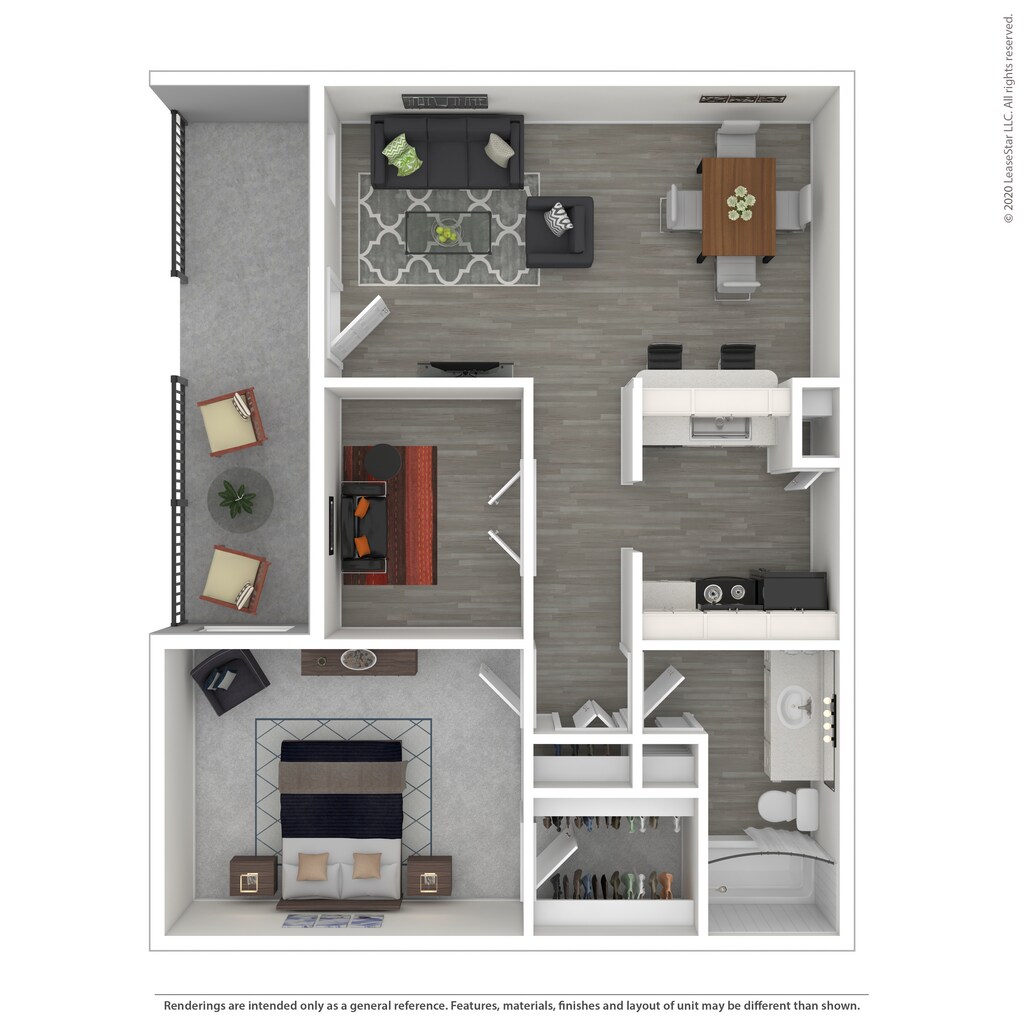 1 Dormitorio, 1 Baño, 743 pies²Disponible February 9, 2026Galería del Modelo