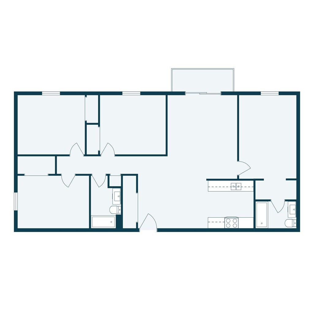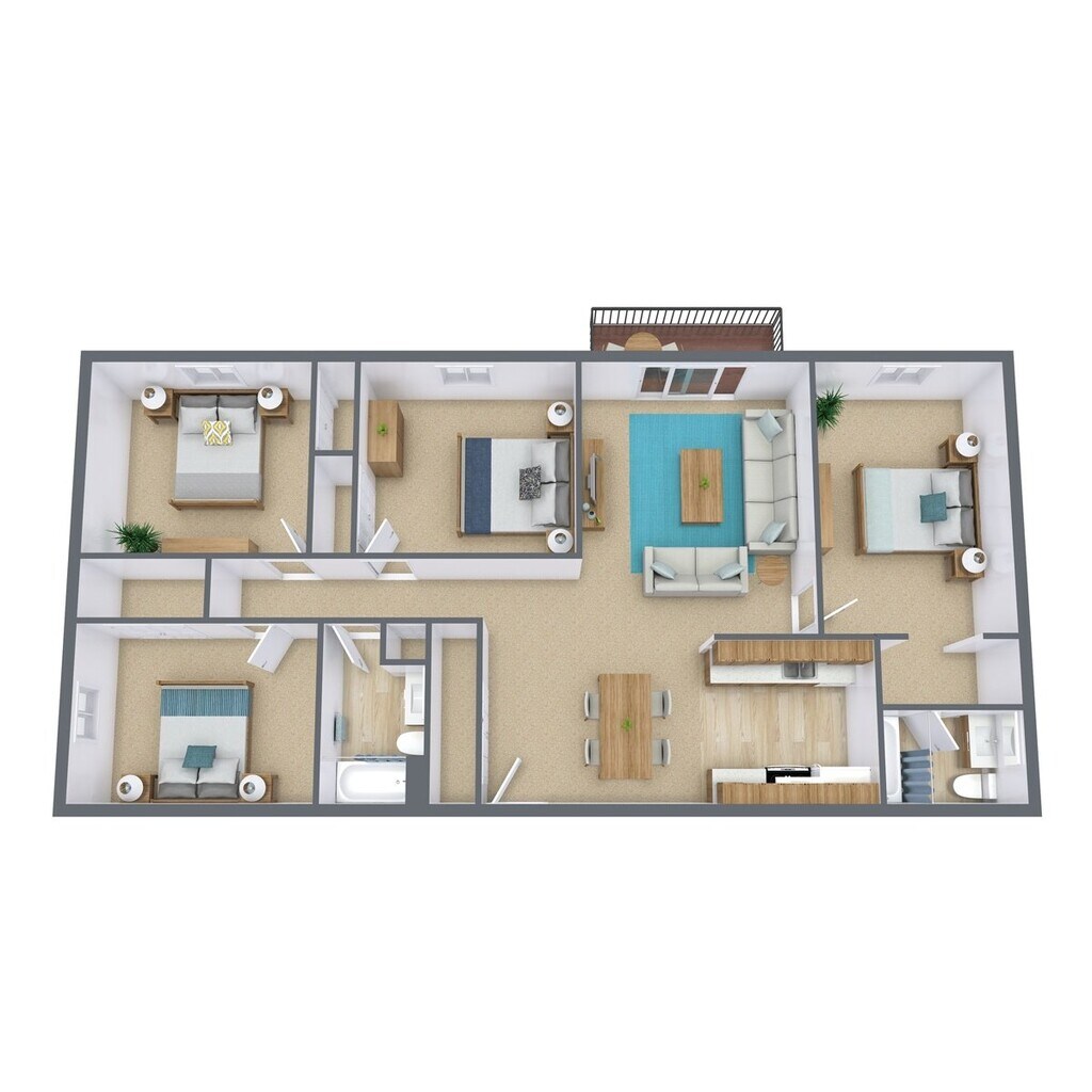 4 Dormitorios, 2 Baños, 1250 pies²Galería del Modelo