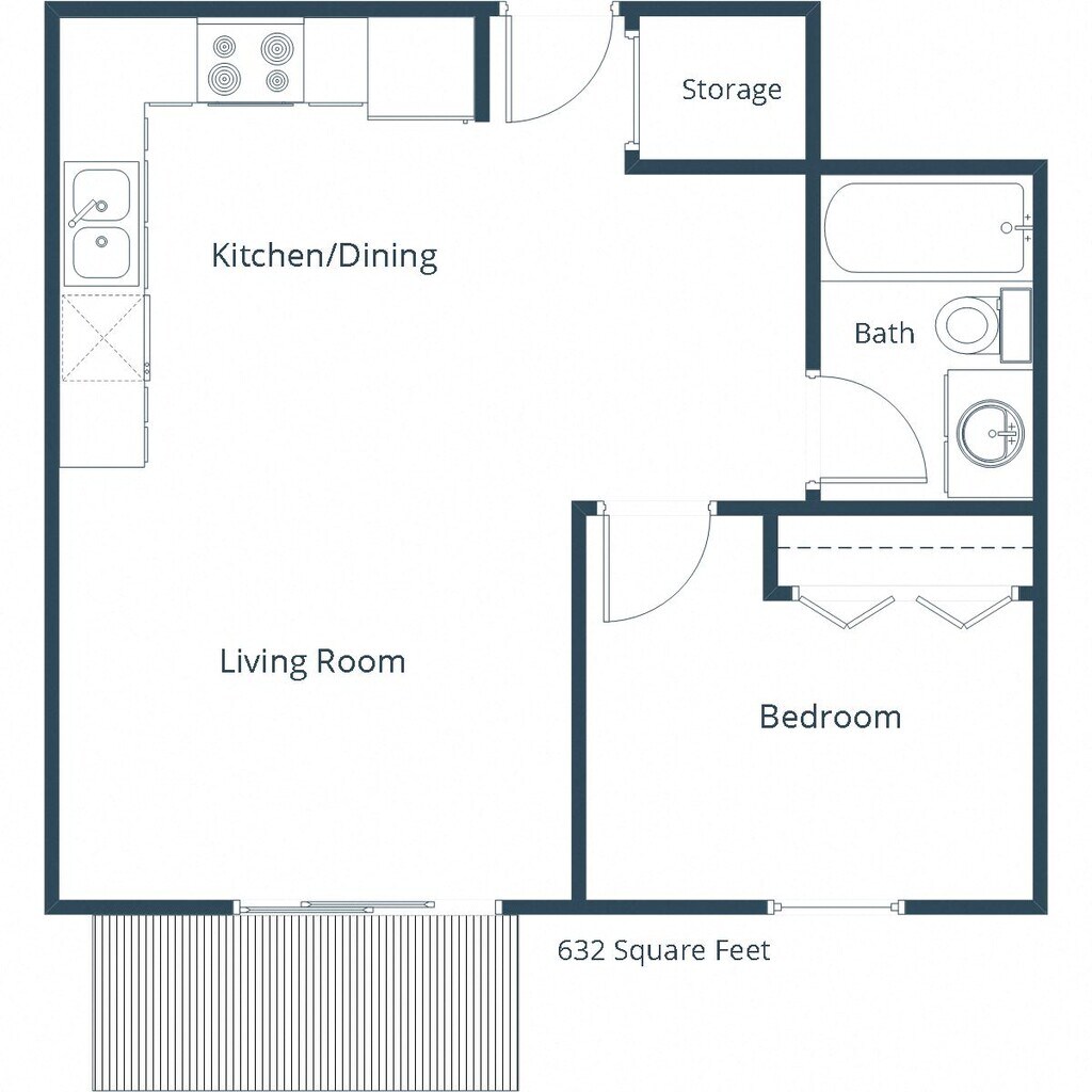 1 Dormitorio, 1 Baño, 690 pies²Galería del Modelo