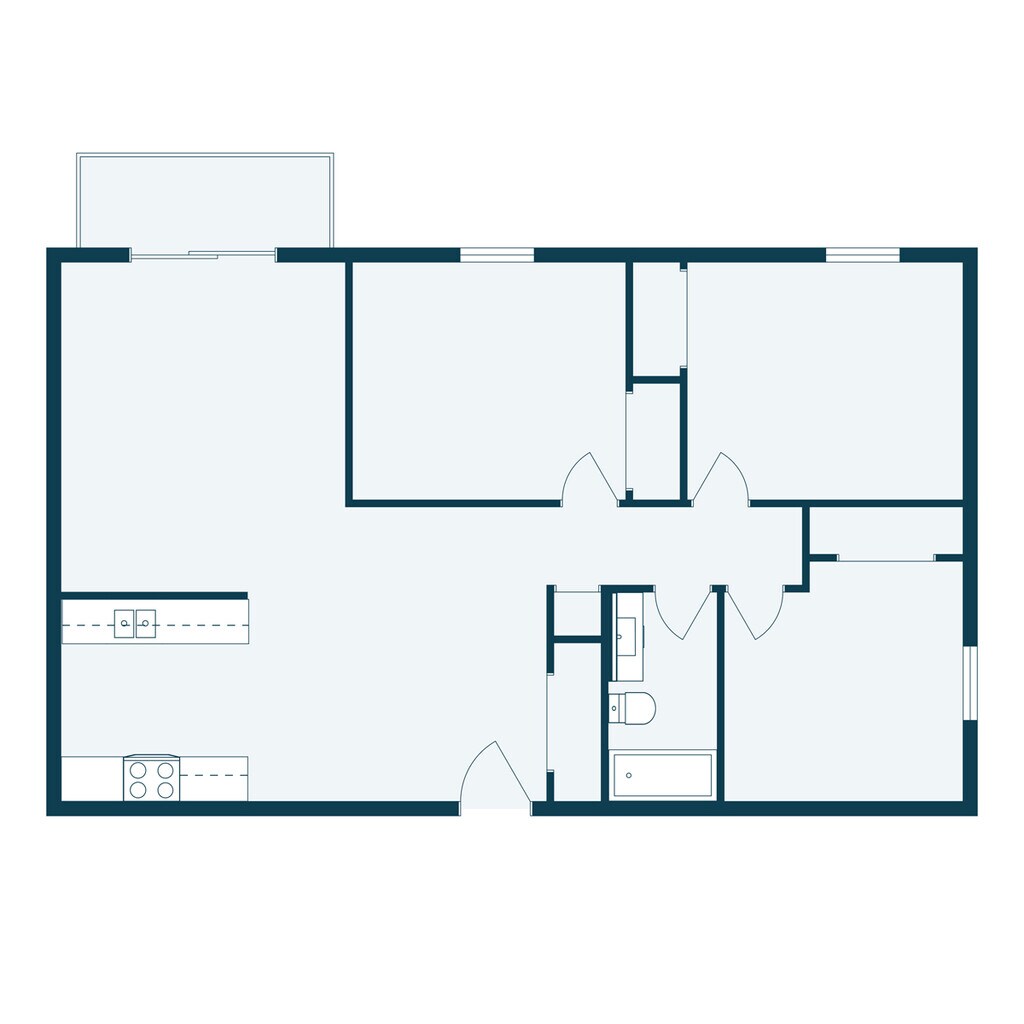 Three Bedroom 31A - Plano 2 Unidad de apartamento: 201Modelo de apartamento: Three Bedroom 31A3 Dormitorios, 1 Baño, 1060 sq ftDisponible December 1, 20254 Dormitorios