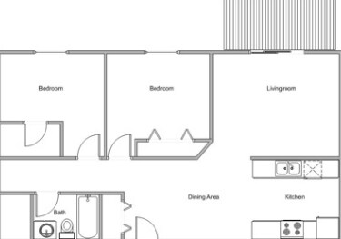 2 Dormitorios, 1 Baño, 854 pies²Galería del Modelo