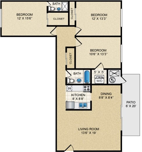 Fecha Disponibilidad Unidad Pies² No Disponible Three Bedroom 1350 pies² Modelo de apartamento: Three Bedroom3 Dormitorios, 2 Baños, 1350 sq ftNo Disponible![]()