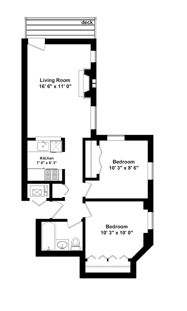2 Dormitorios, 1 Baño, 892 pies²Disponible AhoraGalería del Modelo