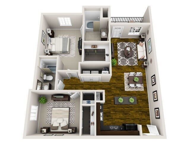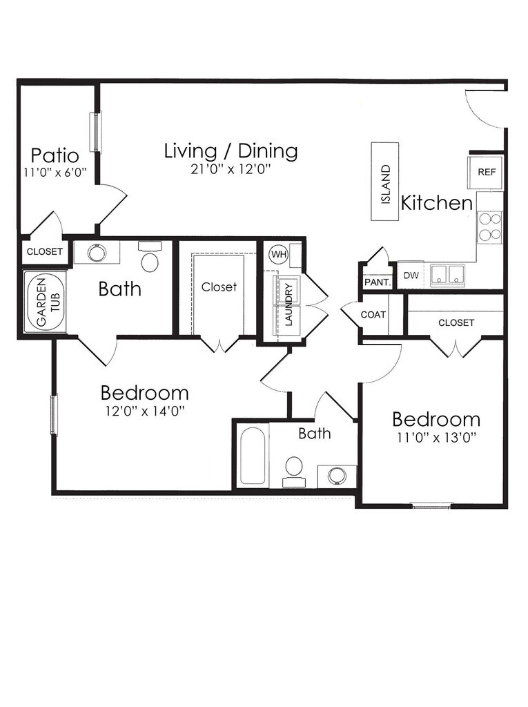 Modelo de apartamento: GarnetDesde $1,1962 Dormitorios, 2 Baños, 1065 sq ftDisponible Ahora![]()