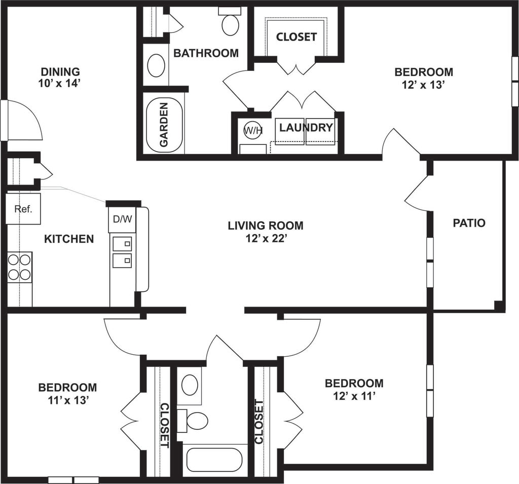 3 Dormitorios, 2 Baños, 1311 pies²Disponible AhoraGalería del Modelo