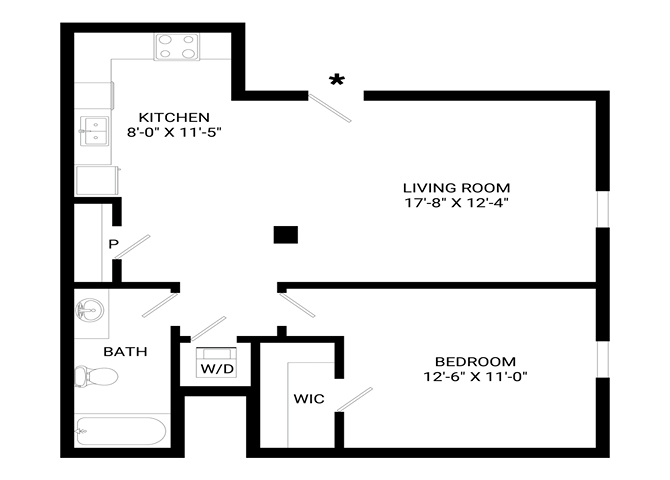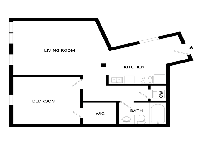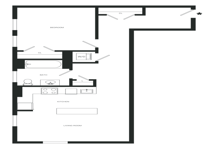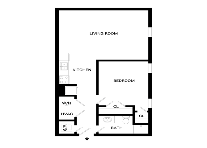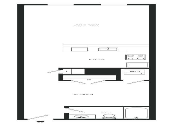 Estudio, 1 Baño, 667 pies²El más grandeEsta opción tiene las unidades más grandes para este modeloGalería del Modelo
