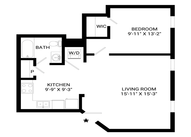 Modelo de apartamento: BeyondLlame para PreciosEstudio, 1 Baño, 616 sq ftNo Disponible![]()