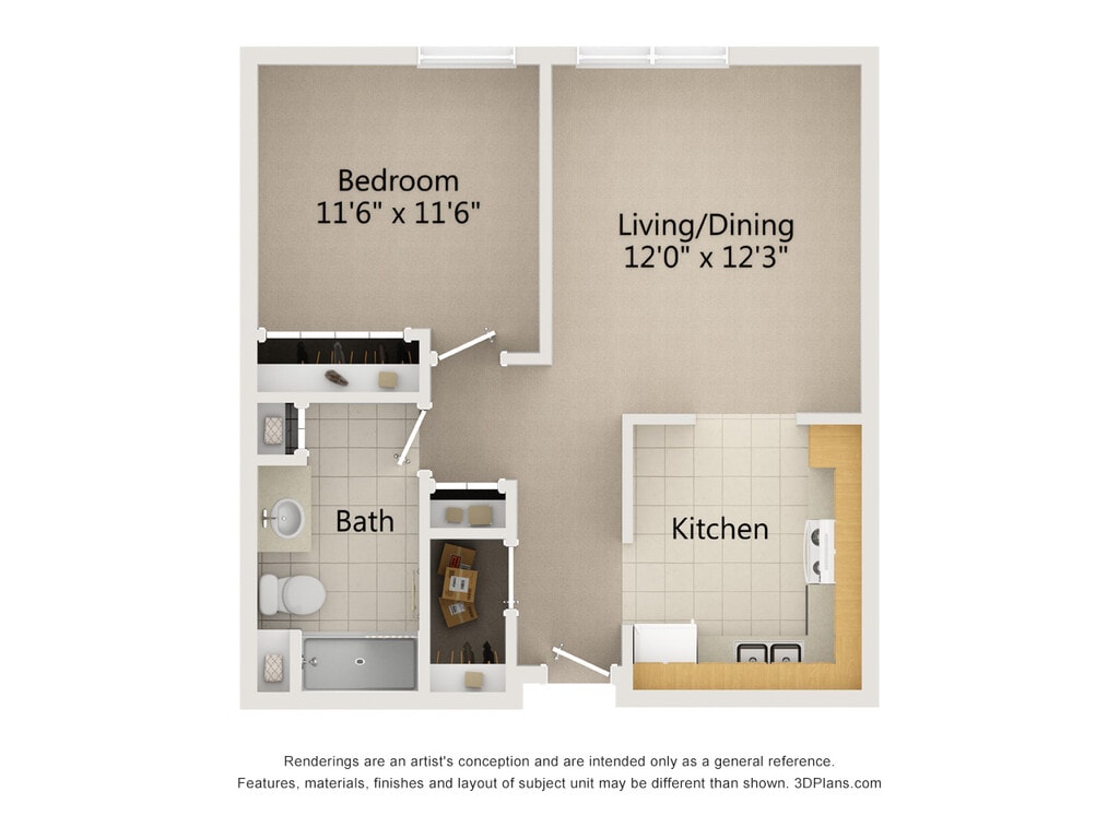 1 Dormitorio, 1 Baño, 614 pies²Disponible AhoraGalería del Modelo