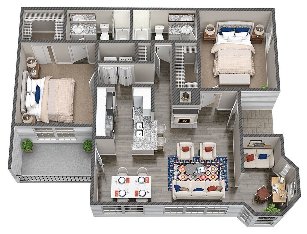 Modelo de apartamento: A3$1,1701 Dormitorio, 1 Baño, 682 sq ftDisponible Ahora![]()