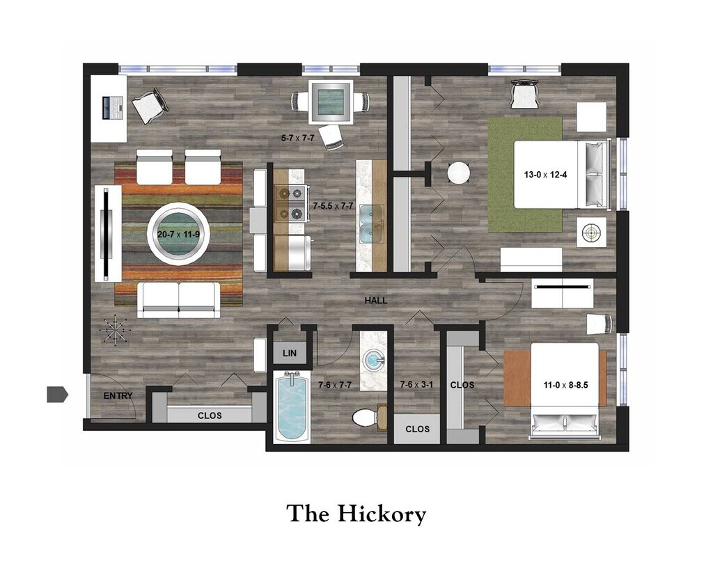 Modelo de apartamento: 2 Bedrooms, 1 BathroomDesde $1,1832 Dormitorios, 1 Baño, 707-842 sq ftDisponible Ahora![]()