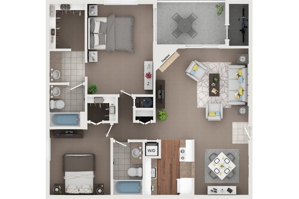 Modelo de apartamento: Brighton 2 Bedroom 2 Bath DeluxeDesde $1,9512 Dormitorios, 2 Baños, 1046 sq ftDisponible AhoraPlanosFotos![]()
