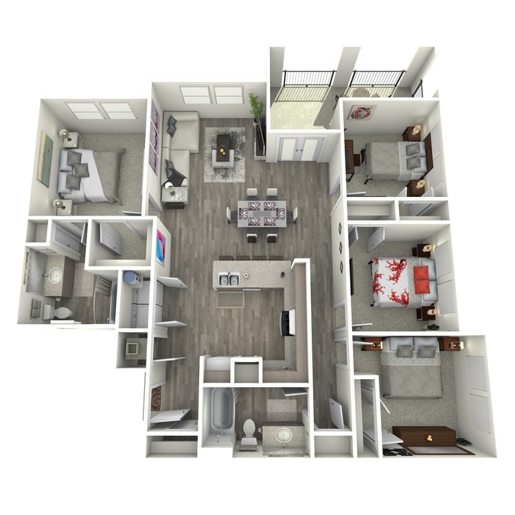 4 Dormitorios, 2 Baños, 1288 pies²Disponible AhoraGalería del Modelo