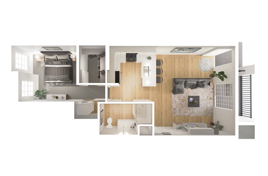 1 Dormitorio, 1 Baño, 741 pies²Disponible AhoraGalería del Modelo