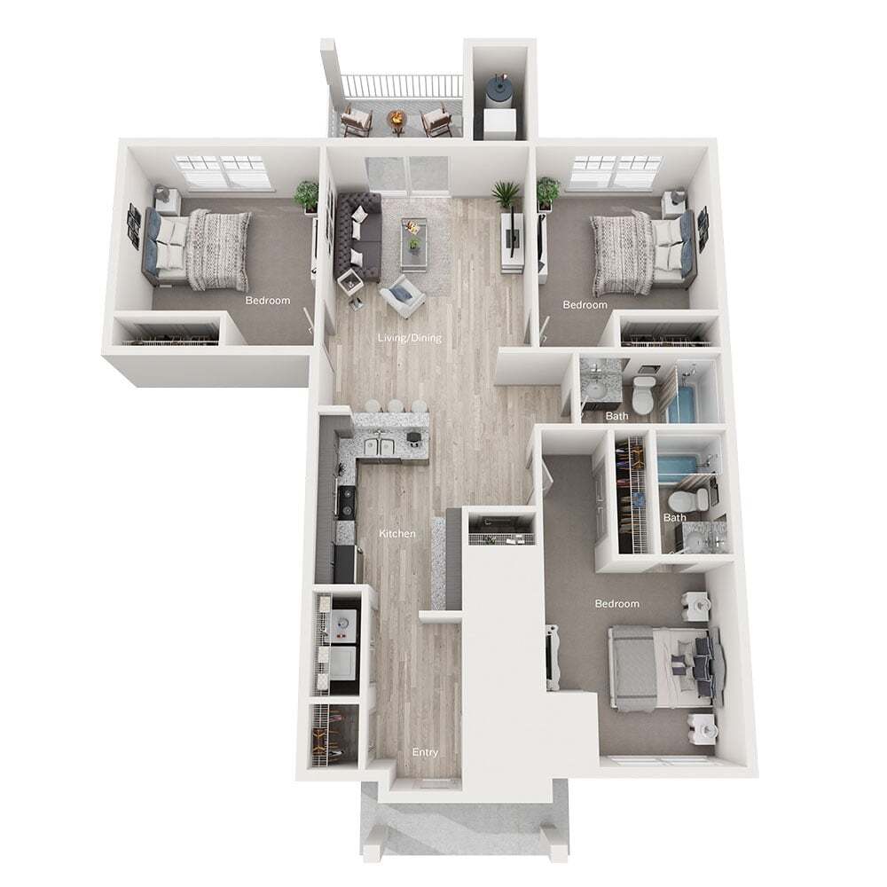 3 Dormitorios, 2 Baños, 1277 pies²Galería del Modelo