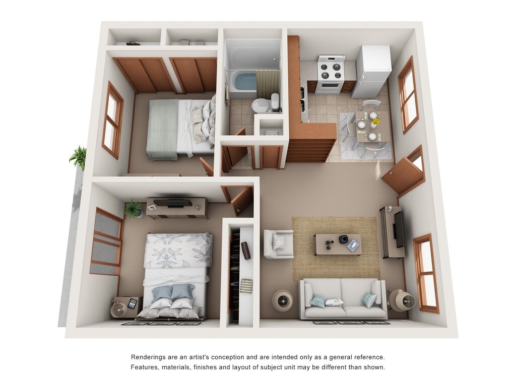 Modelo de apartamento: The Marigold$1,1502 Dormitorios, 1 Baño, 660 sq ftDisponible AhoraPlanosFotos![]()