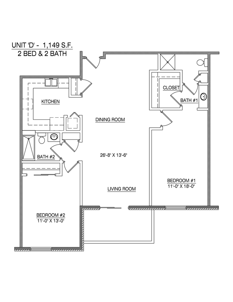 2 Dormitorios, 2 Baños, 1149 pies²Galería del Modelo