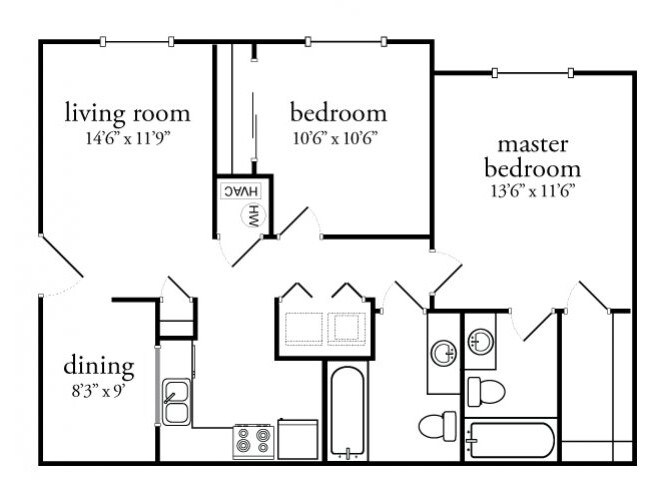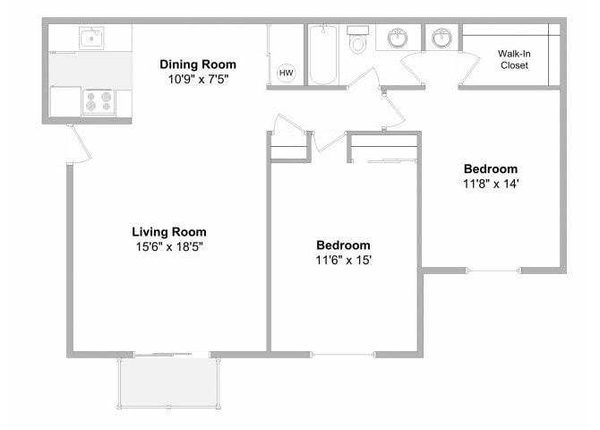 2 Bedroom - Plano 1 2 Bedroom 2 Bath