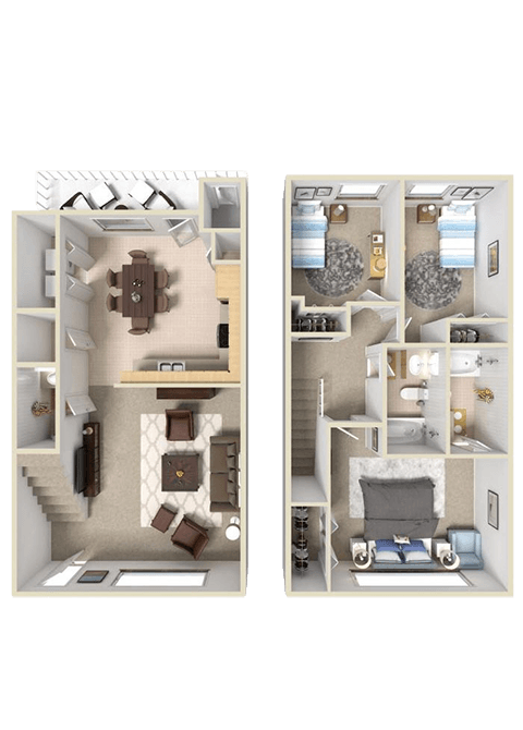 3 Dormitorios, 2.5 Baños, 1196 pies²Disponible AhoraGalería del Modelo