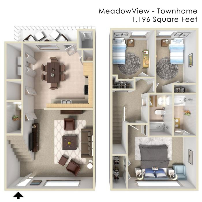 MeadowView Townhomes ofrece apartamentos de 3 Dormitorios desde $1,469 con 1,196 pies cuadrados. Aquí está el precio actual y la disponibilidad: