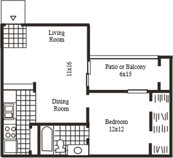 Modelo de apartamento: A3Desde $8651 Dormitorio, 1 Baño, 630 sq ftDisponible AhoraPlanosFotos![]()