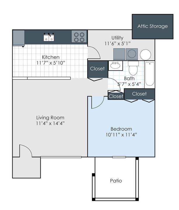 Modelo de apartamento: One Bedroom One Bath ApartmentDesde $9951 Dormitorio, 1 Baño, 576 sq ftDisponible Ahora![]()