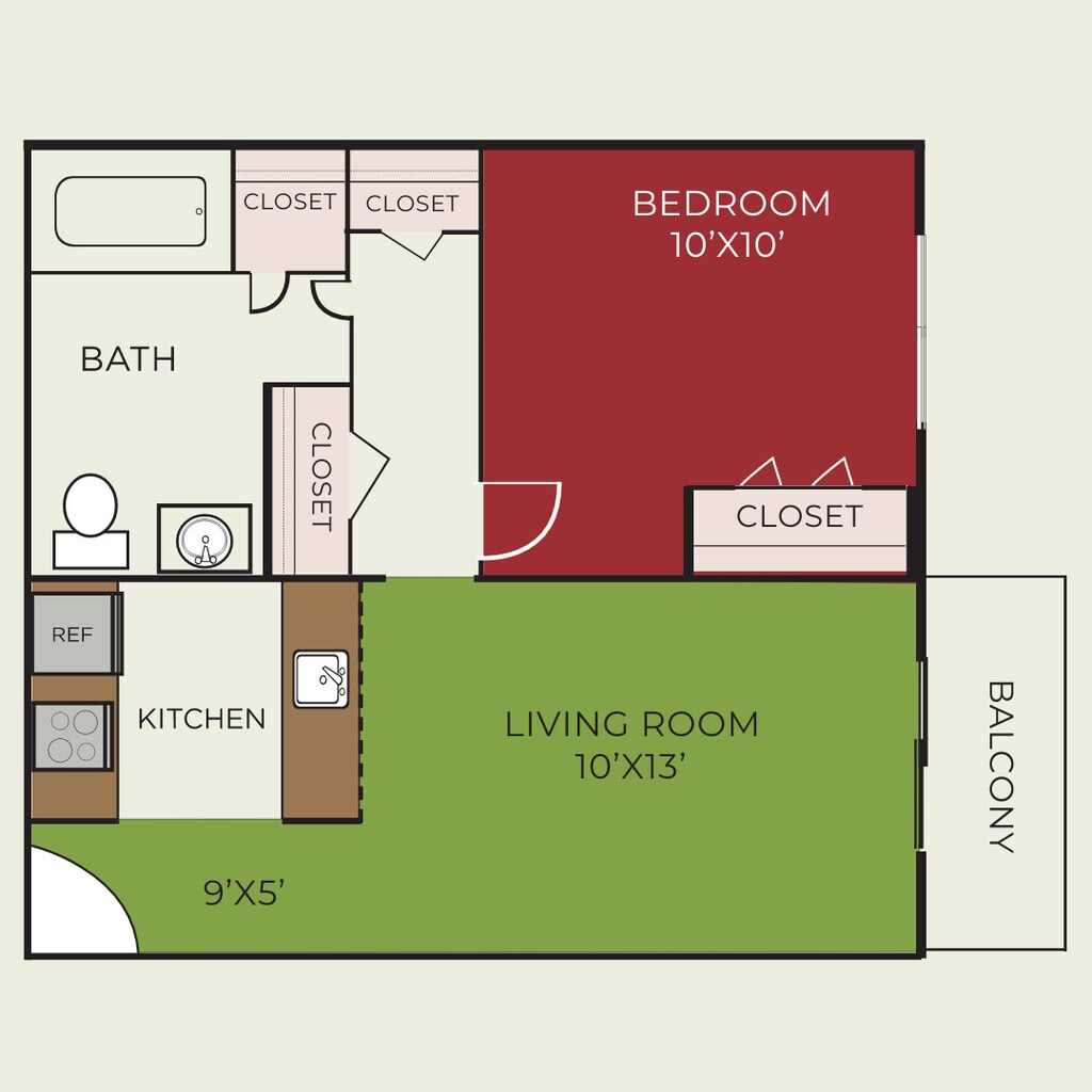 1 Dormitorio, 1 Baño, 564 pies²Disponible AhoraGalería del Modelo