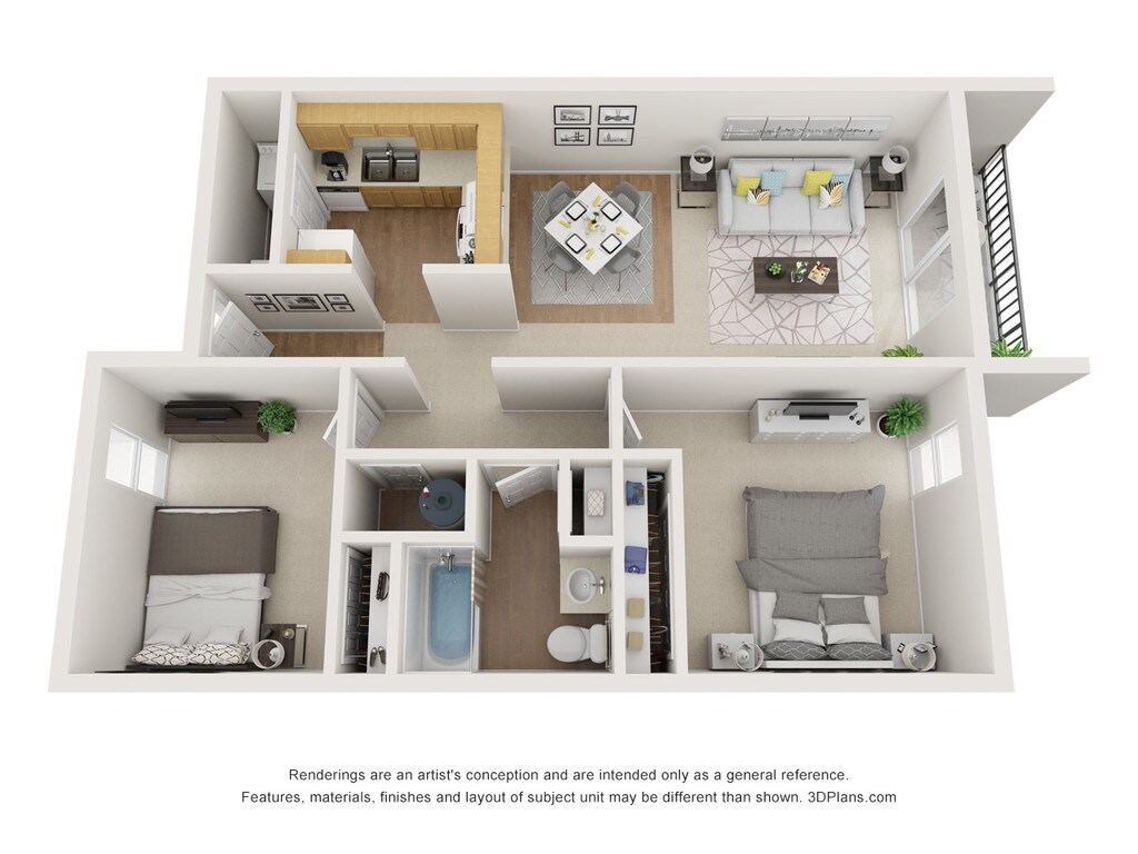 Modelo de apartamento: One Bedroom$9001 Dormitorio, 1 Baño, 758 sq ftDisponible AhoraOne Bedroom - Plano 1 2 Dormitorios