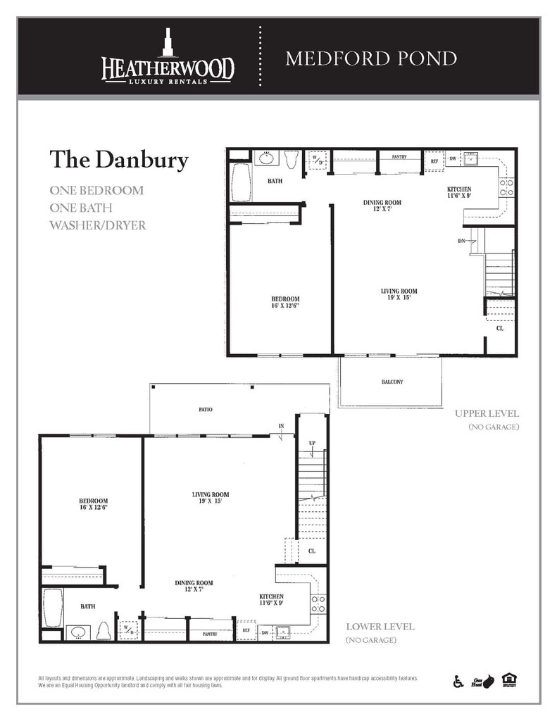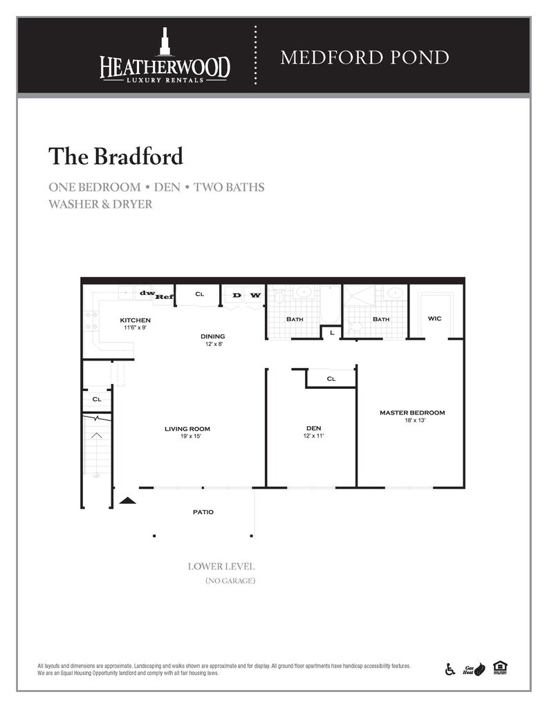 Modelo de apartamento: The Danbury with GarageLlame para Precios1 Dormitorio, 1 Baño, 936 sq ftNo DisponibleThe Danbury with Garage - Plano 1 The Bradford with Den