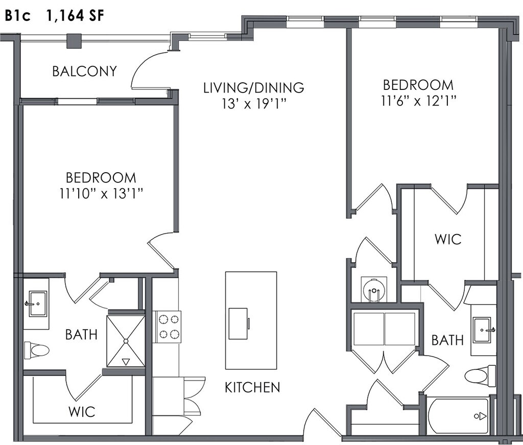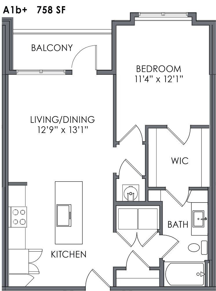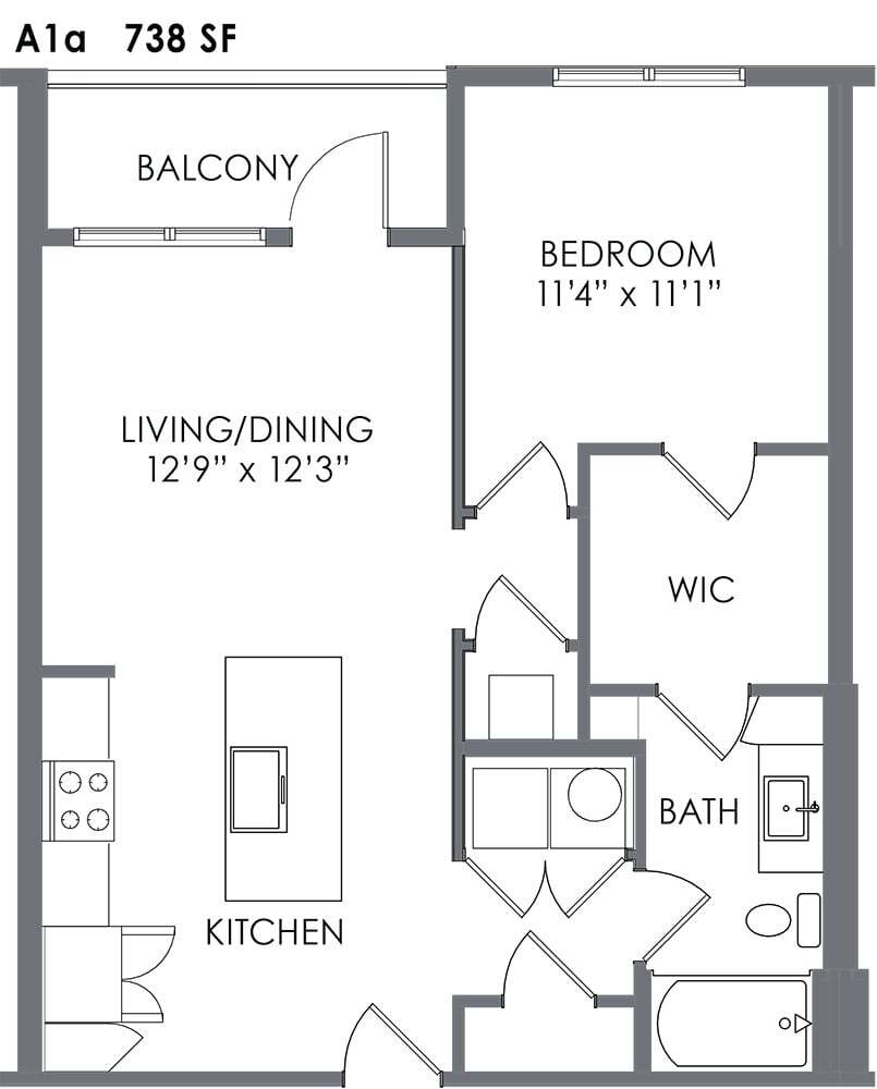 1 Dormitorio, 1 Baño, 738-750 pies²Disponible AhoraGalería del Modelo