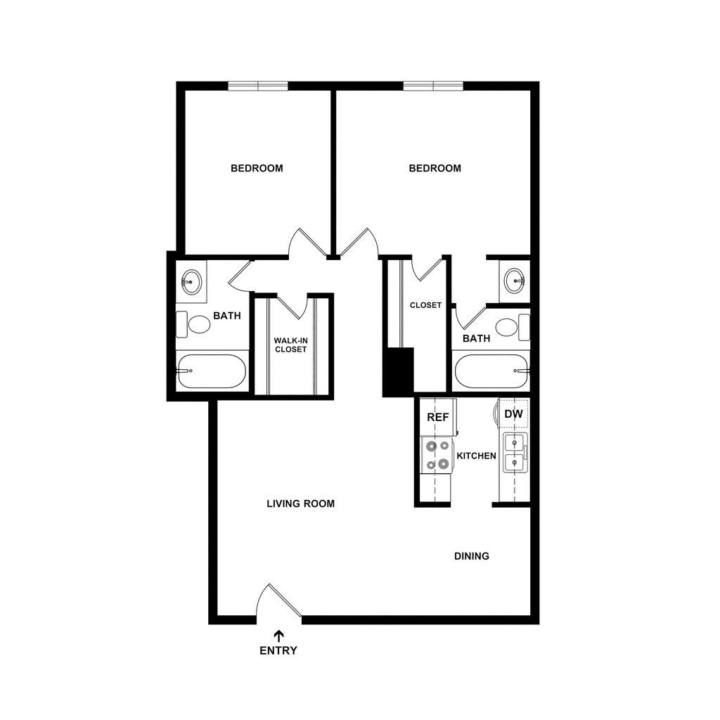 2 Dormitorios, 2 Baños, 987 pies²Galería del Modelo