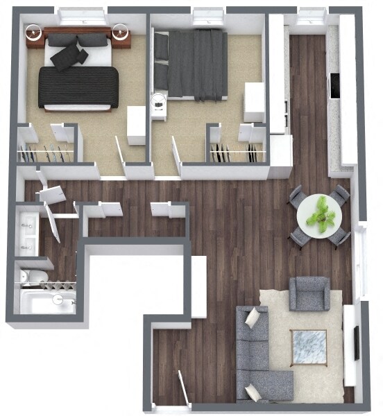Modelo de apartamento: The PlatteLlame para Precios2 Dormitorios, 1 Baño, 720 sq ftNo DisponibleLos planos son representaciones artísticas. Todas las dimensiones son aproximadas. El producto y las especificaciones reales pueden variar en tamaño o detalle. No todas las características están disponibles en cada vivienda en alquiler. Por favor, consulta con un representante para obtener más detalles.