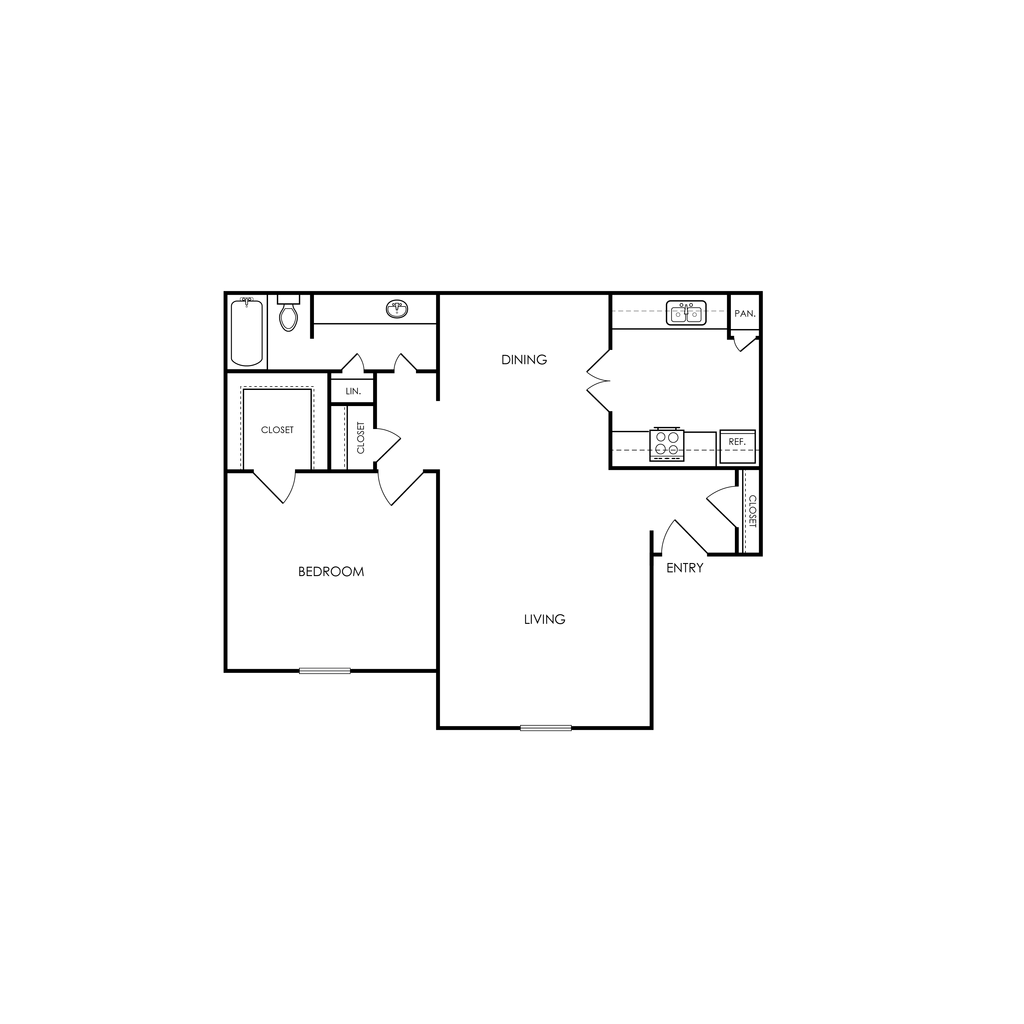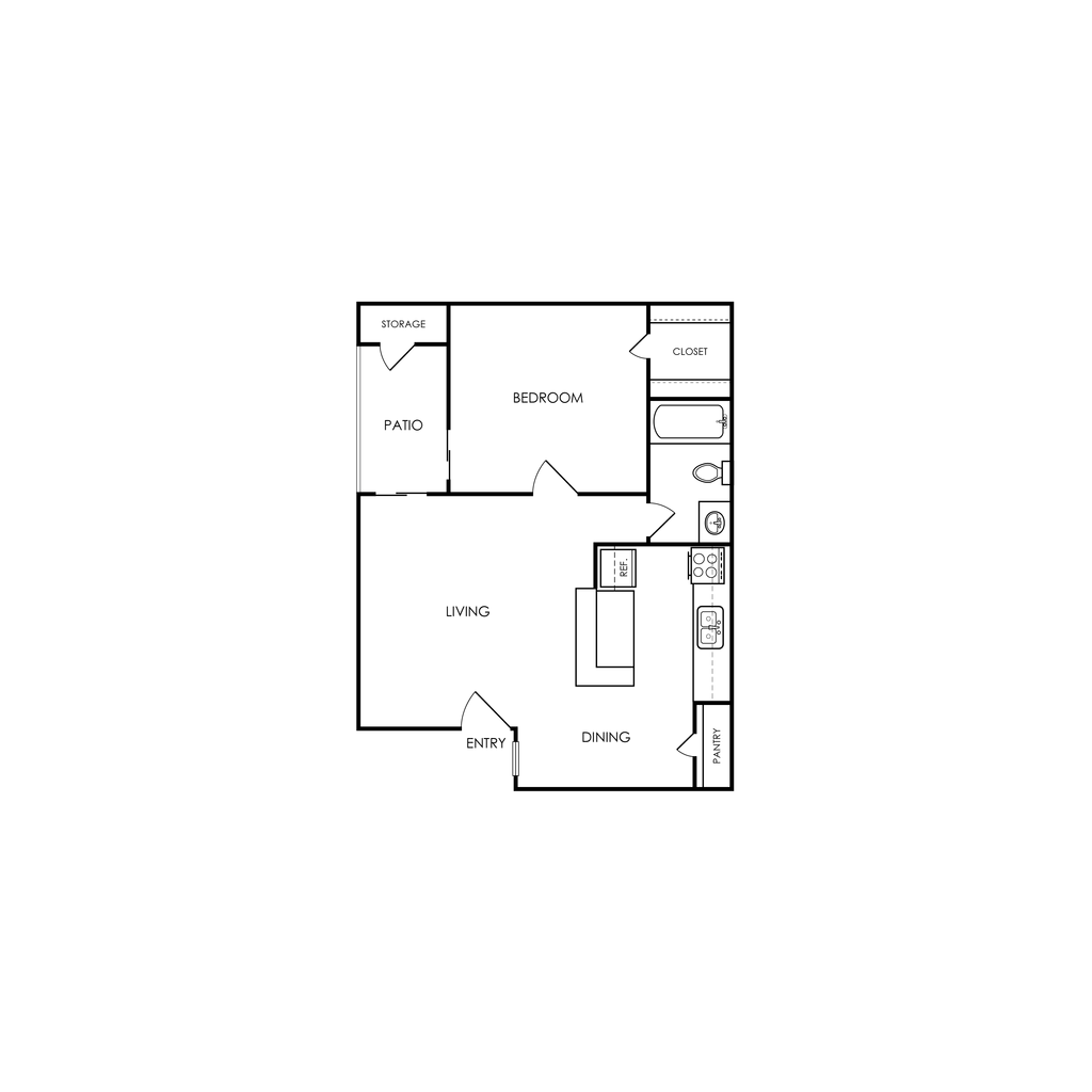 Efficiency - Plano 1 Unidad de apartamento: 0124Modelo de apartamento: Efficiency$820Estudio, 1 Baño, 529 sq ftDisponible AhoraEfficiency