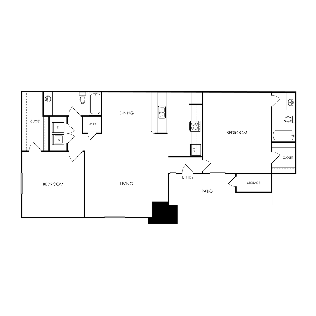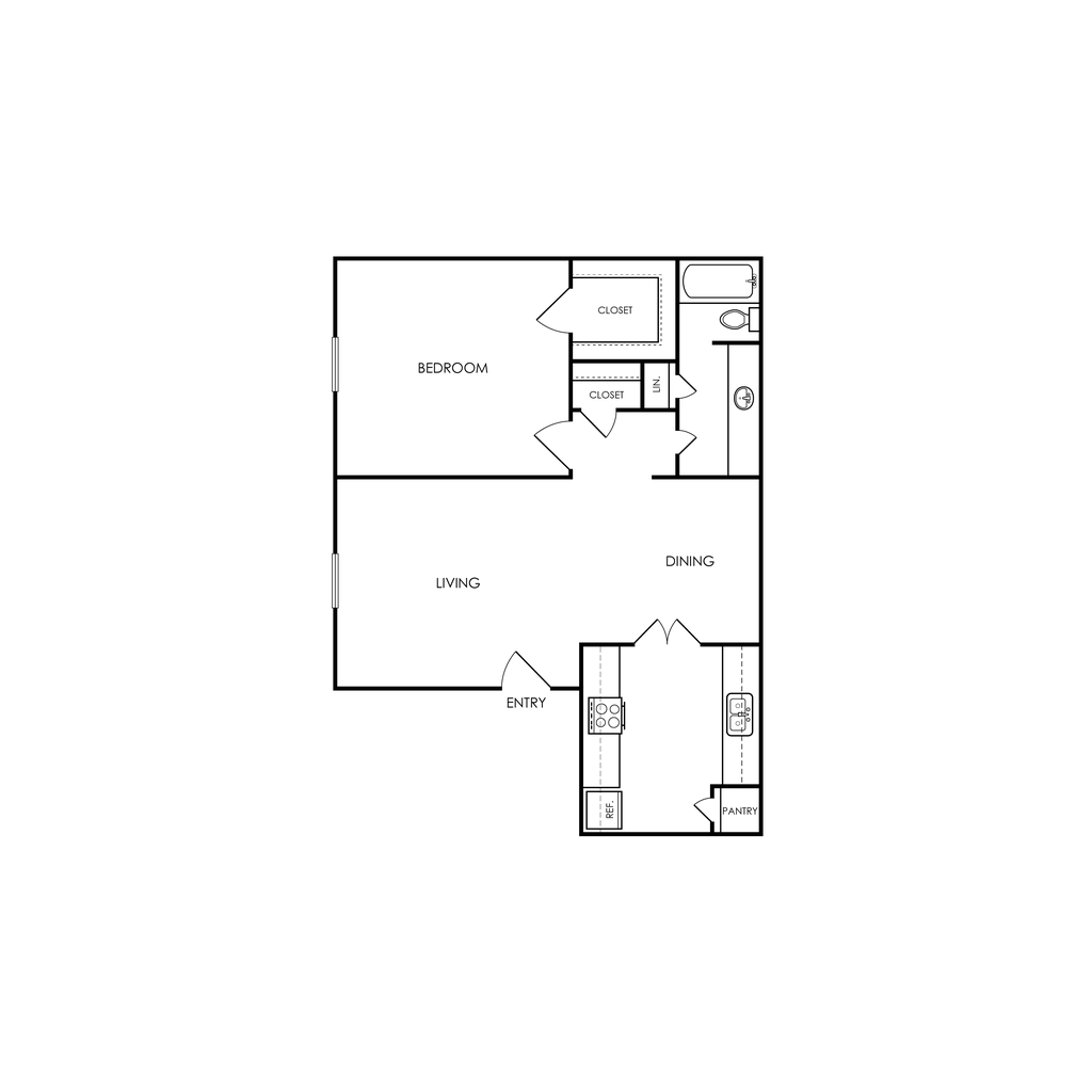 Modelo de apartamento: 1 Bed 1 BathDesde $9151 Dormitorio, 1 Baño, 660 sq ftDisponible Ahora![]()