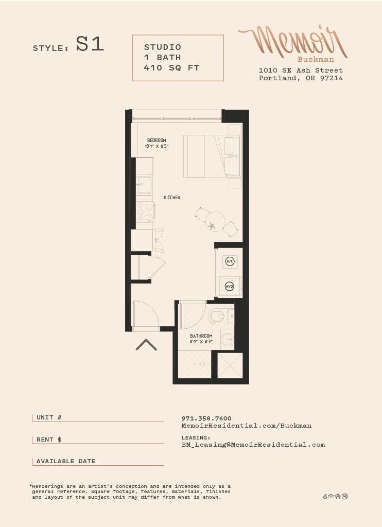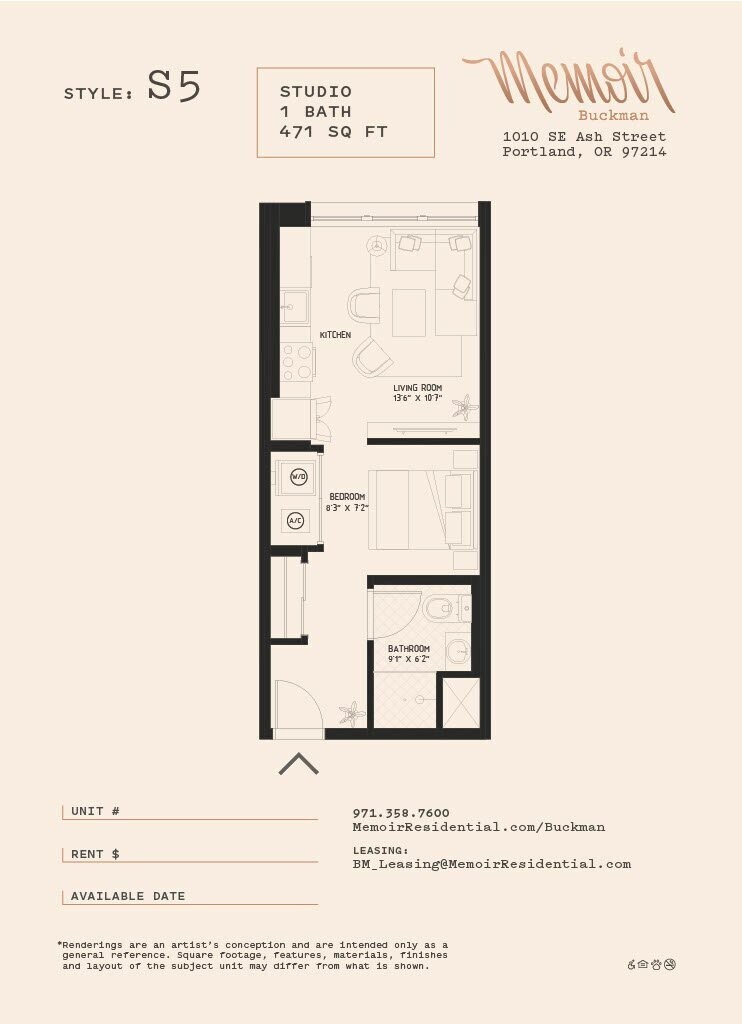 A novel approach to contemporary apartment living. Every chapter of life deserves a beautiful home. Memoir creates inspired residential experiences that empower you to live your best chapter. Memoir Buckman offers elevated design, amplified amenities, and an emphasis on beautiful shared spaces in Portland's most vibrant Central Eastside neighborhood.Memoir Buckman provides Studio, One-Bedroom, and Two-Bedroom apartments with thoughtful attention to design details, including brushed bronze, satin brass, and matte black hardware, distinctive tile, and a palette of Earth tones inspired by Portland's natural landscape and Buckman's laid-back charm.