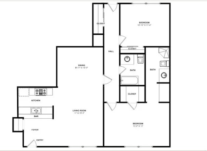 Modelo de apartamento: yia5-110Desde $8021 Dormitorio, 1 Baño, 640 sq ftDisponible Ahora![]()