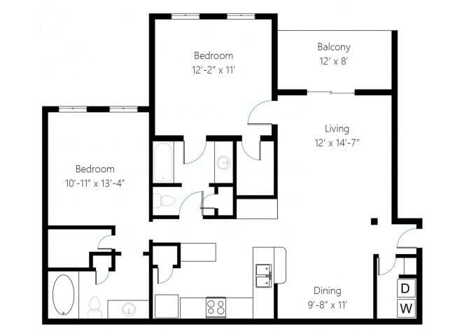 Modelo de apartamento: A2A1 Dormitorio, 1 Baño, 798 sq ftDisponible Ahora![]()