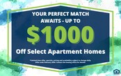 Modelo de apartamento: B12 Dormitorios, 1 Baño, 1003 sq ftDisponible March 31, 2026![]()