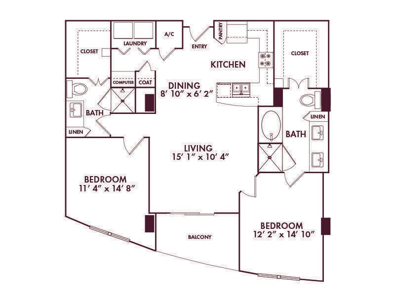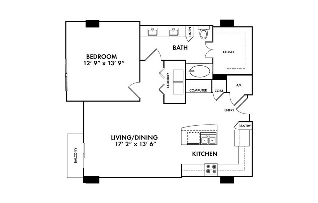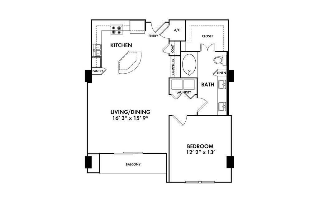 Modelo de apartamento: A13Desde $1,8261 Dormitorio, 1 Baño, 1000 sq ftDisponible AhoraLos planos son representaciones artísticas. Todas las dimensiones son aproximadas. El producto y las especificaciones reales pueden variar en tamaño o detalle. No todas las características están disponibles en cada vivienda en alquiler. Por favor, consulta con un representante para obtener más detalles.