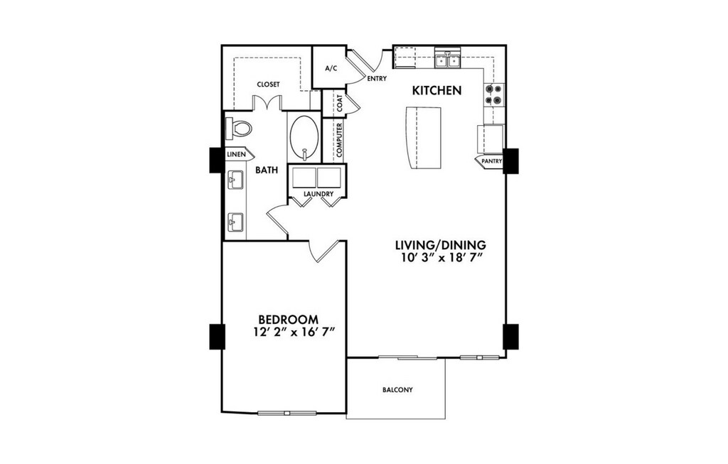 A3 - Plano 1 Unidad de apartamento: 315Modelo de apartamento: A3$1,7221 Dormitorio, 1 Baño, 609 sq ftDisponible AhoraPlano: A13