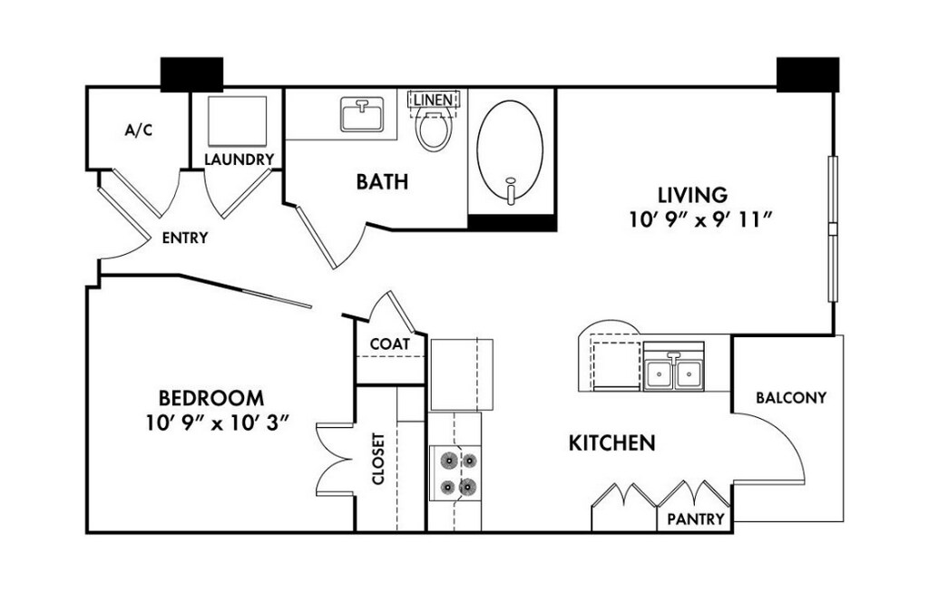1 Dormitorio, 1 Baño, 1000 pies²Precio Mensual TotalDisponible AhoraGalería del Modelo
