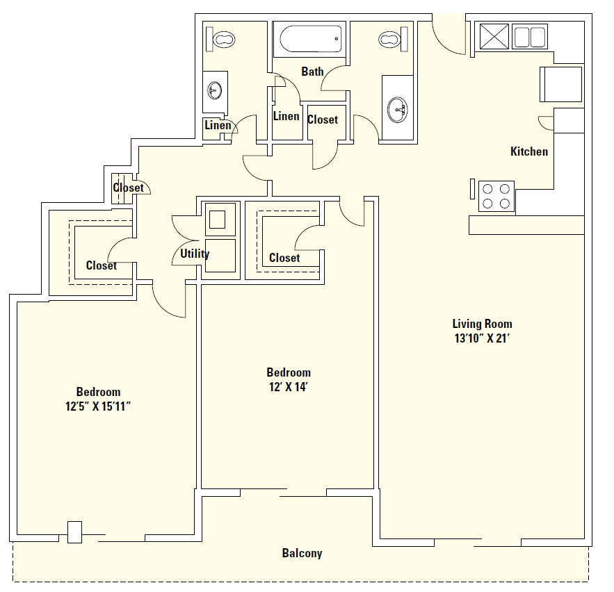 1 Dormitorio, 1 Baño, 884 pies²Disponible AhoraGalería del Modelo