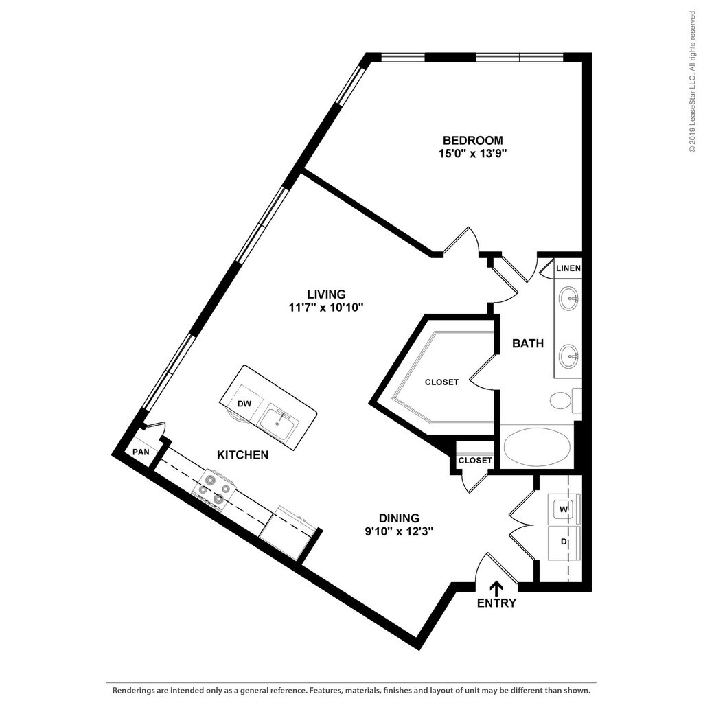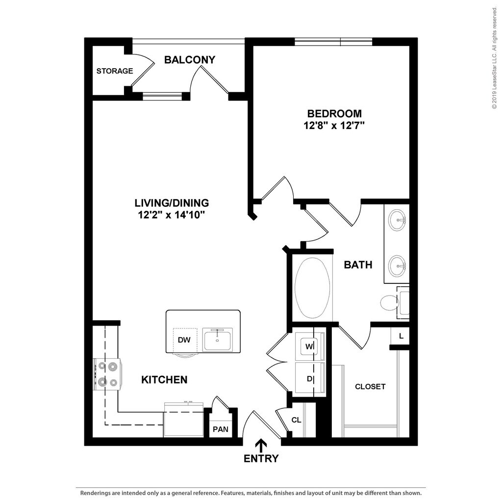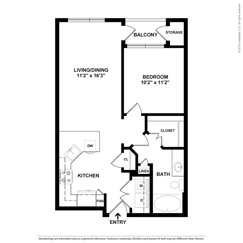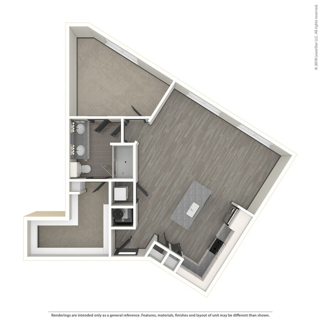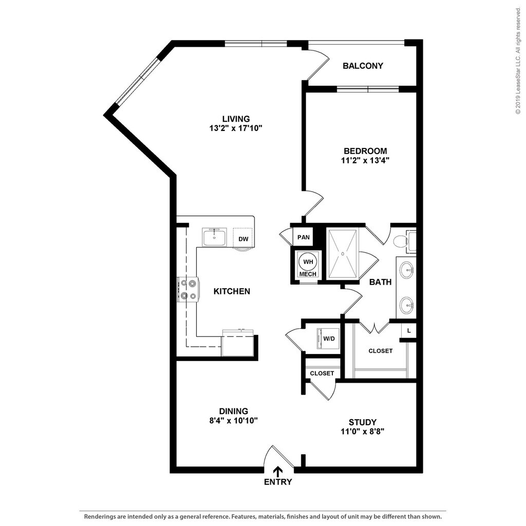 Modelo de apartamento: A1Desde $1,2111 Dormitorio, 1 Baño, 632 sq ftDisponible Ahora![]()